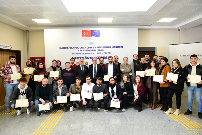 5 gün süren eğitim sonunda katılımcılar sertifikalarını üniversitemiz Rektörü Prof. Dr. Niyazi Can ve Kahramanmaraş Kuyumcular Odası Başkanı Hacı Mustafa Öz’ün elinden aldılar.